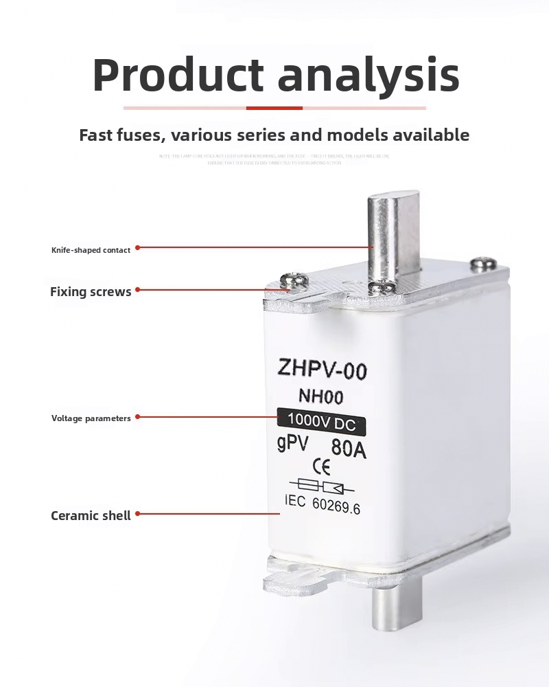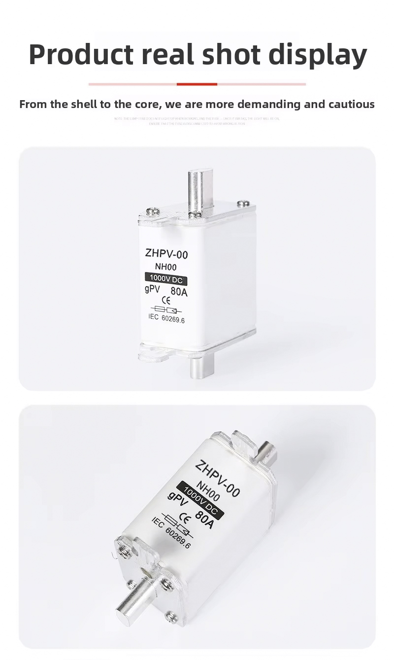 Fabricado con plástico duradero, el fusible de cuchilla fotovoltaico de bajo voltaje IEC NH00-1000V de plástico con capacidad de ruptura de 80 A y 6 ka ofrece un excelente aislamiento y resistencia al calor, lo que garantiza un rendimiento estable en entornos exigentes. Cumple con las normas IEC, este fusible garantiza la seguridad y cumple con los requisitos de los proyectos modernos de energía renovable. El diseño tipo cuchilla permite una fácil instalación y reemplazo, lo que reduce el tiempo de mantenimiento y garantiza el funcionamiento continuo del sistema. Elija el fusible de cuchilla fotovoltaico de bajo voltaje NH00-1000V IEC de plástico con capacidad de ruptura de 80 A y 6 ka para que su aplicación solar o industrial se beneficie de una protección excepcional, durabilidad y cumplimiento de los estándares de seguridad internacionales.